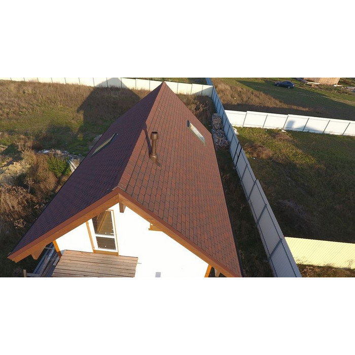 SBS-модифицированный битум в основании придаёт черепице особо высокую пластичность. Поэтому она не трескается на морозе и не коробится в жаркую погоду. Кроме того, её удобно сгибать при монтаже криволинейных участков кровли