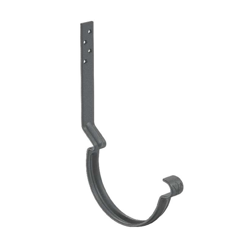 -Задний замок выполнен со смещением, что позволяет обеспечить наличие вентиляционного зазора между желобом и лобовой доской -Увеличенное «монтажное плечо» крюка (160 мм – длинный крюк; 230 мм – удлиненный крюк) удобный монтаж на разные уклоны крыши-Дополнительное ребро жесткости,  увеличивающее прочность и надежность крюка-Особая марка стали повышенной прочности, цельнометаллическая полоса толщиной 4 мм с оцинковкой 275 г/м.кв.-Уникальность подтверждает фирменный штамп «лилия» расположенный в передней части.