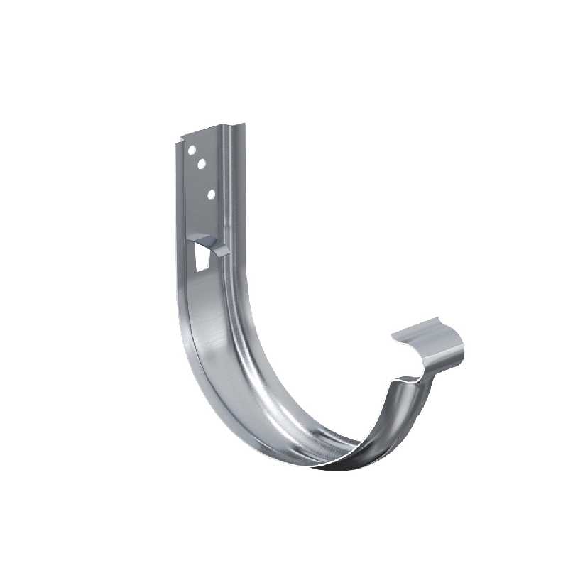 Крюк крепления желоба универсальный предназначен для крепления водосточного желоба по аналогии со стандартными крюками крепления желоба, и может быть использован как в качестве короткого крюка, так и в качестве длинного (при условии применения удлинителя крюка). Наличие изгиба для завитка желоба в передней части позволяет устанавливать желоба в крюки без отгиба установленного ранее фартука («капельника»). Наличие дополнительных ребер жесткости делает крюк очень прочным.