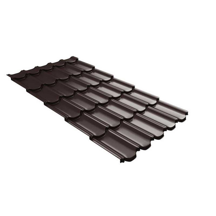 Металлочерепица Grand Line Kvinta plus 0,5 GreenСoat Pural BT RR 887 Шоколад | c 3D резом