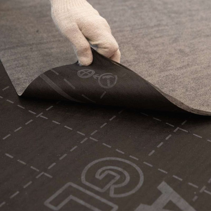 Битумно-полимерный подкладочный ковер механической фиксации с клеевыми монтажными полосами с основой из стеклохолста для скатных кровель с финишным покрытием из гибкой битумной черепицы.