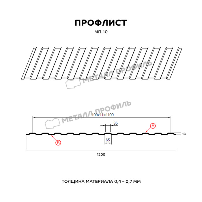Профнастил — холоднокатаные стальные листы с полимерным покрытием PURMAN. Для облицовки забора в современном стиле Профилированный лист МП-10x1100-A (PURMAN-20-9010-0,5) — оптимальный материал. Профилированный лист МП-10x1100-A (PURMAN-20-9010-0,5) популярен в Мге по причине своей экономичности и неприхотливости. Если вы желаете купить данный материал, обращайте внимание на рельеф: чем он выразительнее, тем прочнее профилированный лист.