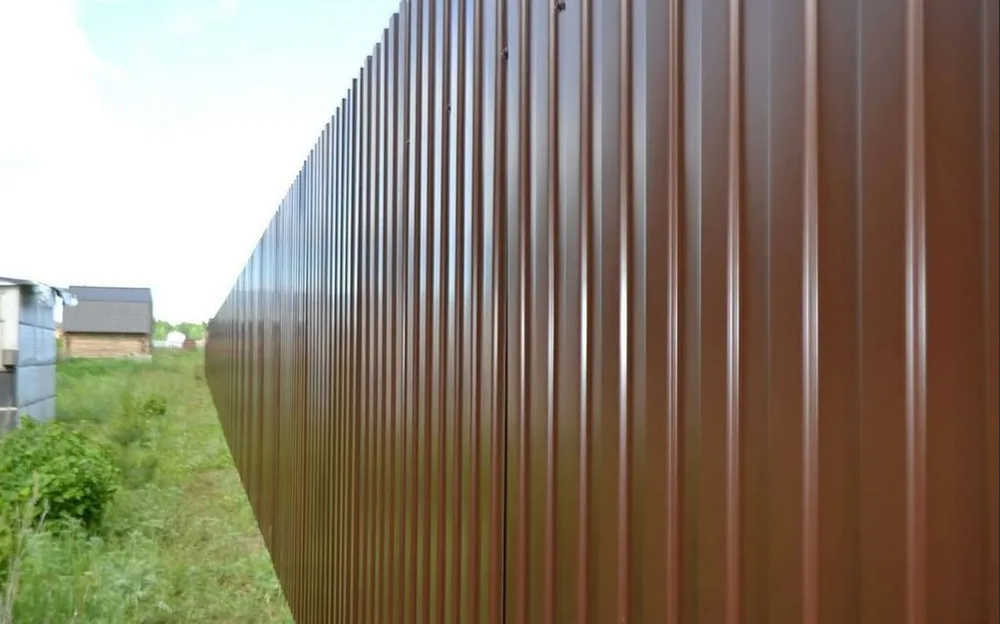 Покрытие Полиэстер толщиной 25 мкм подарит забору эстетичный внешний вид и обеспечит защиту от непогоды. Покрытие не выцветает, но его не рекомендуется подвергать повышенным физическим нагрузкам — оно отличается умеренной стойкостью к ним. Благодаря полиэфирной основе покрытие пластично, следовательно, защищено от микроповреждений. Указанные характеристики, а также богатая цветовая гамма стали причиной востребованности покрытия — оно используется в производстве товаров для отделки фасадов, заборов, крыш (профилированного листа, фасадных кассет и пр.). Температура эксплуатации стали с покрытием Полиэстер не должна превышать +80 °С. Выбирайте популярное и качественное покрытие Полиэстер по умеренной цене! Успешное прохождение испытаний Мгаского института стали и сплавов — ещё одно подтверждение качества представленной продукции. Наша гарантия на стальные изделия с указанным покрытием — до 10 лет*.